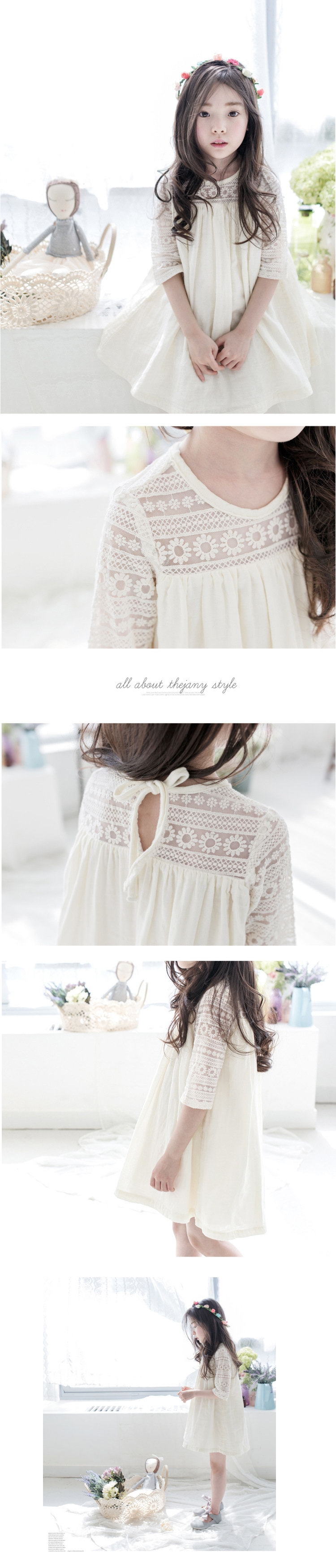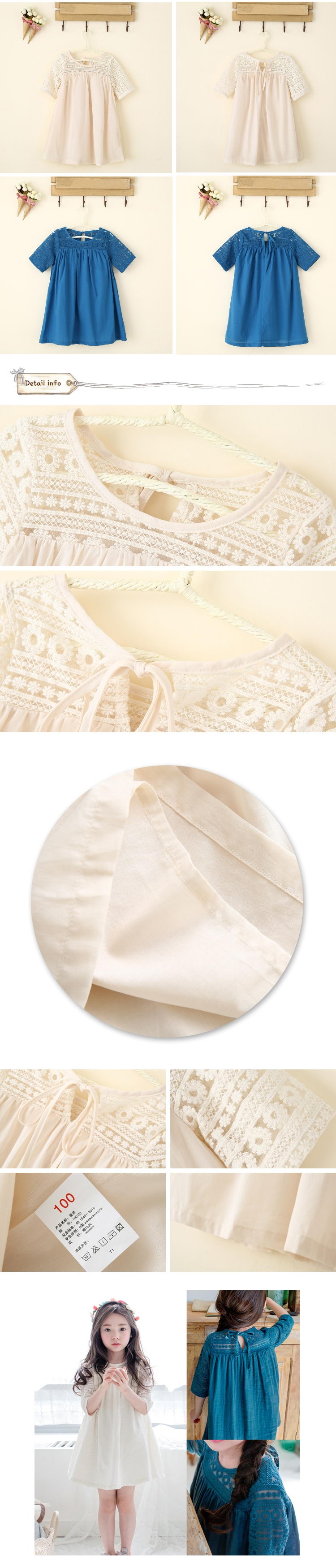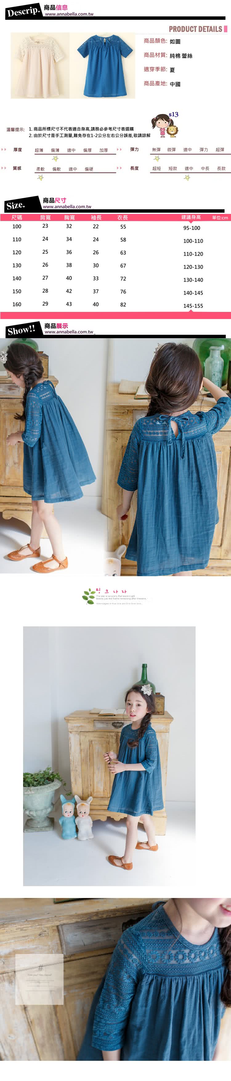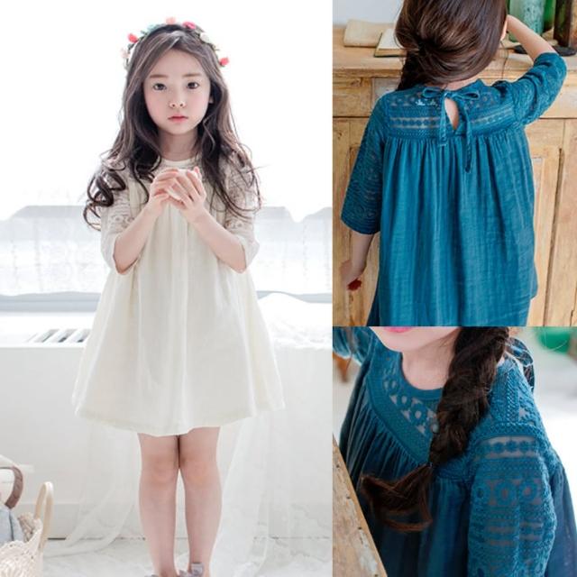 【小衣衫童裝】夏季女童蕾絲勾花五分袖拼接連身裙洋裝(1070359) 評價
